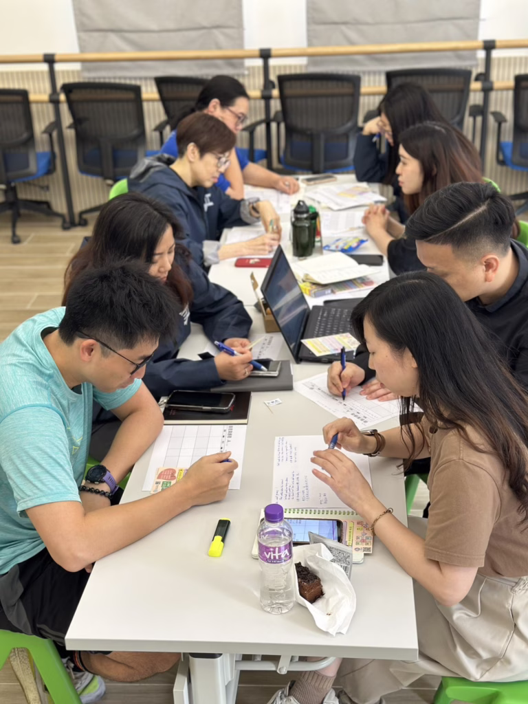 值得一提的是,本次培訓特別設計「種子教師進階課程」,培養校內帶領者角色。從去年上過工作坊共有14位教師接受進階訓練,並於後續課程中擔任助教,協助引導討論與演練,不僅提升現場學習深度,也為未來校內持續推動奠定基礎。